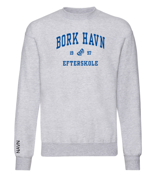 PÅTRYKT ÅRSLOGO PÅ RYG OG COLLEGE TRYK PÅ FRONT.