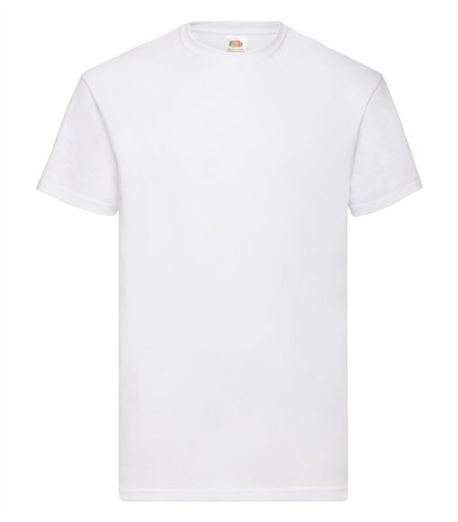 BOMULDS T-SHIRT FRA FRUIT OF THE LOOM MED PÅTRYKT SKOLE LOGO PÅ BRYST OG ÅRSLOGO PÅ RYG.