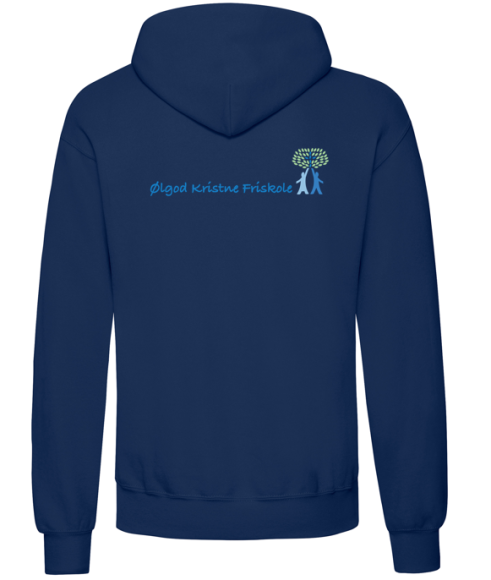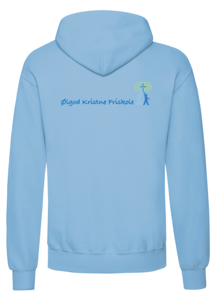 BOMULDS HOODIE FRA FRUIT OF THE LOOM MED PÅTRYKT LOGO PÅ RYG.