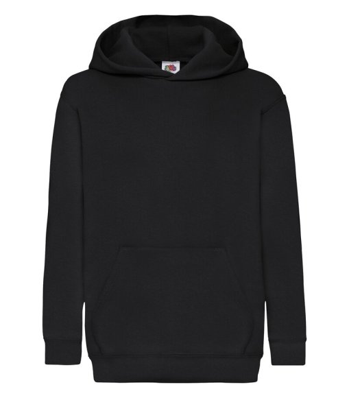 Bomuldshoodie fra Fruit of the Loom med påtrykt klub logo på bryst.
